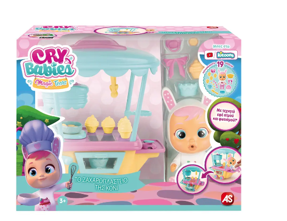 Παίξε με την Κόνι, το Κλαψουλίνι που αγαπάει να φτιάχνει γλυκά και να τα μοιράζεται με τους φίλους της, και φτιάξε cupcakes και macaroons. Τάισε την με το μπιμπερό, πίεσε την κοιλίτσα της και θα κλάψει με πραγματικά δάκρυα! Όταν τα δάκρυα της Κόνι πέφτουν μέσα στο συλλέκτη δακρύων. ο φούρνος ενεργοποιείται! Τα φώτα ανάβουν και καπνός βγαίνει από το φούρνο. Τα γλυκά σου είναι έτοιμα για σερβίρισμα.