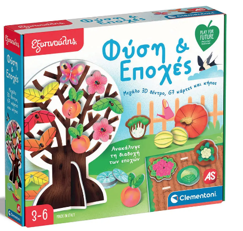Ένα διασκεδαστικό εκπαιδευτικό παιχνίδι για να ανακαλύψετε τον τρόπο που μεταμορφώνεται η φύση ανάλογα με τις εποχές. Μέσα από το παιχνίδι, το παιδί μπορεί να διασκεδάσει τοποθετώντας στο μεγάλο δέντρο νιφάδες χιονιού, φύλλα, λουλούδια και ροδάκινα ανάλογα με την εποχή που θέλει να απεικονίσει. Ακόμα, το παιδί μαθαίνει ποια είναι τα λαχανικά και τα λουλούδια κάθε εποχής, τοποθετώντας αυτά τα στοιχεία σε ένα μικρό κήπο στους πρόποδες του μεγάλου δέντρου.