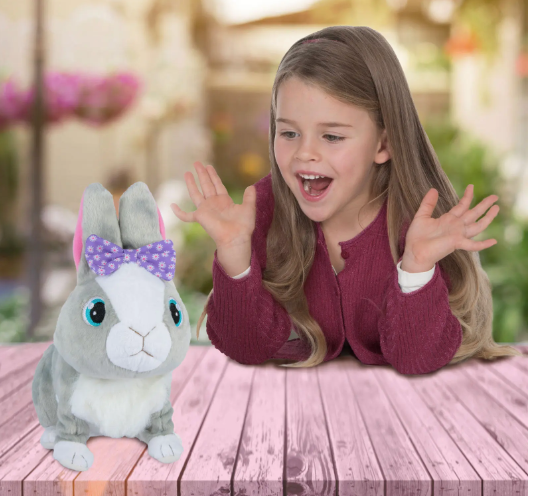 Η Betsy είναι το πιο αξιολάτρευτο, διαδραστικό λαγουδάκι που αγαπά να παίζει μαζί σου! Κάνει τους πιο χαριτωμένους ήχους όταν την αγκαλιάζεις και κουνάει τα αυτιά της όταν χοροπηδάει, σαν αληθινό λαγουδάκι.