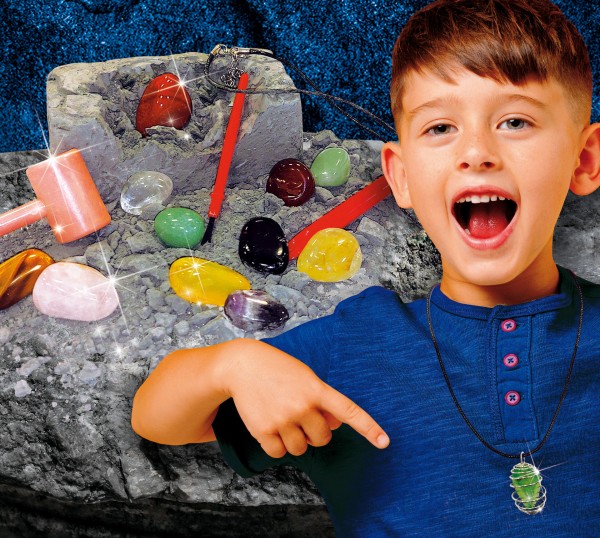 Σκάψτε το τούλβο και ξεθάψτε πραγματικούς πολύτιμους λίθους όπως ο κόκκινος ίασπις, η αβεντουρίνη, ο χαλαζίας και ο ροζ χαλαζίας.