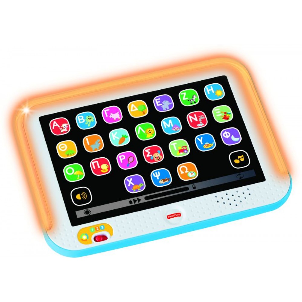 Fisher Price Laugh & Learn Εκπαιδευτικό Tablet-Blue (DKK08). Τώρα τα μικρά σας μπορούν να έχουν το δικό τους tablet ίδιο με αυτό του μπαμπά και της μαμάς! Το μωρό σας πατάει τα πλήκτρα και ακούει εκπαιδευτικά τραγουδάκια, φρασούλες και ήχους. Με αυτό το διασκεδαστικό τρόπο μαθαίνει: γράμματα, αριθμούς, χρώματα και τόσα άλλα! Με κομψό σχεδιασμό για εύκολη μεταφορά! Διαθέσιμο και σε ροζ για κοριτσάκια! Με τεχνολογία Smart Stages - το εκπαιδευτικό περιεχόμενο αλλάζει καθώς το μωρό σας μεγαλώνει. Κάθε μωρό έχει το δικό του ρυθμό ανάπτυξης και η τεχνολογία Smart Stages™ σας βοηθάει να επιλέξετε, χειροκίνητα με έναν απλό διακόπτη, το κατάλληλο επίπεδο! Υπάρχουν πολλά εκπαιδευτικά τραγουδάκια, φρασούλες και ήχοι σε κάθε επίπεδο!
