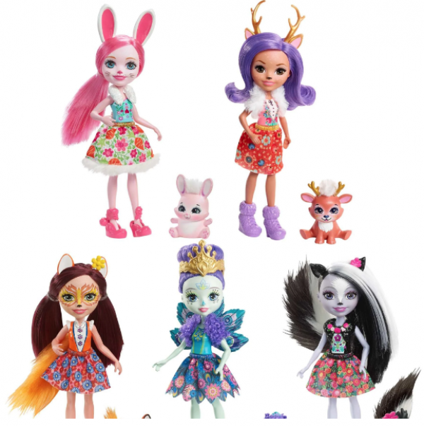 Αξιολάτρευτες κουκλίτσες με ζωάκια φιλαράκια που θα σας μαγέψουν. Οι Enchantimals™ είναι μία παρέα γλυκών κοριτσιών που μοιράζονται έναν ιδιαίτερο δεσμό με τα αγαπημένα τους ζωάκια φιλαράκια! Ανακαλύψτε τις κούκλες Enchantimals™ με διαφορετικές εμφανίσεις με θέμα τα ζωάκια: Bree Bunny™ κούκλα και Twist™ κουνελάκι, Felicity Fox™ κούκλα και Flick™ αλεπουδίτσα, Sage Skunk™ κούκλα και Caper™ νυφίτσα, Patter Peacock™ κούκλα και Flap™ παγώνι, Karina Koala™ κούκλα και Dab κοάλα ή Lorna Lamb™ κούκλα και Flag™ αρνάκι. Κάθε κούκλα έχει ύψος 15 εκατοστά και φοράει ρούχα και παπούτσια σε έντονα χρώματα και σχέδια. Τα περίεργα αυτάκια τους ολοκληρώνουν τις απίθανες εμφανίσεις τους. Διασκεδαστικές πινελιές προσθέτουν φαντασία σε κάθε χαρακτήρα, όπως όμορφα μαλλιά, χαρακτηριστικά προσώπου ζώων και μοναδικές λεπτομέρειες: φτερά για την κούκλα Patter Peacock™, ασπρόμαυρη ριγέ γούνινη ουρά για την κούκλα Sage Skunk™ και αυτάκια αλεπούς για την κούκλα Felicity Fox™. Τα ζωάκια τους έχουν χαριτωμένες λεπτομέρειες όπως λουλούδια στα μαλλιά ή χνουδωτά σημεία. Τα παιδιά μπορούν να αναπαραστήσουν τον ιδιαίτερο δεσμό που έχουν οι Enchantimals™ με τα ζωάκια φιλαράκια τους. Κάντε συλλογή για να φτιάξετε τον δικό σας κόσμο Enchantimals™ και να δημιουργήσετε τις δικές σας ιστορίες. Περιλαμβάνεται μία κούκλα Enchantimals™ με ρούχα και αξεσουάρ και ένα ζωάκι. Η κάθε κούκλα πωλείται ξεχωριστά, ανάλογα με τη διαθεσιμότητα. Τα χρώματα και τα σχέδια μπορεί να διαφέρουν.