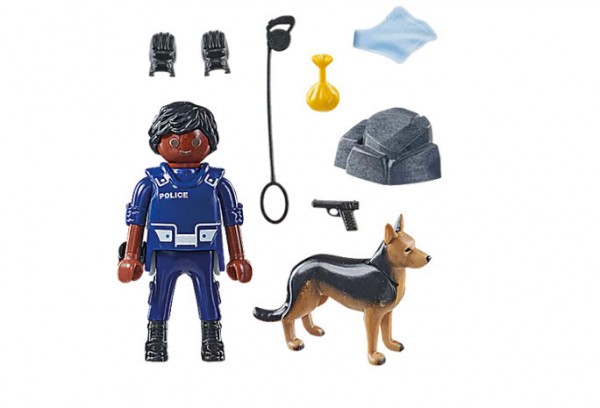 Ο εκπαιδευμένος σκύλος-ανιχνευτής ανακαλύπτει αμέσως με την όσφρησή του τα παράνομα χρήματα. Πριν ξεκινήσει την έρευνα, ο αστυνομικός δίνει στον σκύλο-ανιχνευτή να μυρίσει ένα κομμάτι ύφασμα. Ο σκύλος ξεκινά να ερευνά το σημείο και συνήθως είναι αυτός που λύνει την υπόθεση. Το σετ παιχνιδιού περιλαμβάνει έναν αστυνομικό, έναν σκύλο-ανιχνευτή, γάντια, ένα κομμάτι ύφασμα, όπλο, σάκο με χρήματα και μικρό βράχο-κρυψώνα.