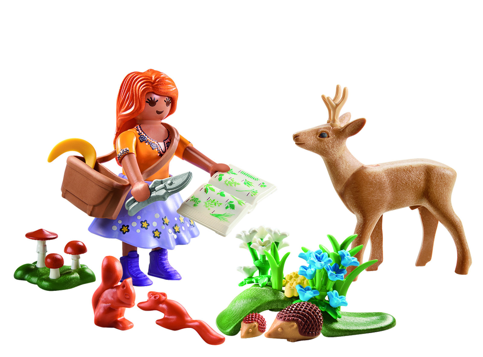 Περιλαμβάνει όμορφα ζωάκια του δάσους. Για τα παιδάκια που αγαπούν τα ζωάκια και τη φύση, το Gift Set Βοτανολόγος είναι η ιδανική επιλογή. Το σετ παιχνιδιού περιλαμβάνει μία Βοτανολόγο, ένα ελάφι, μικρά σκιουράκια και σκατζοχοιράκια, ένα βιβλίο, μία τσάντα και άλλα αξεσουάρ. Με ειδικό ταμπελάκι για ευχές πάνω στο κουτί.