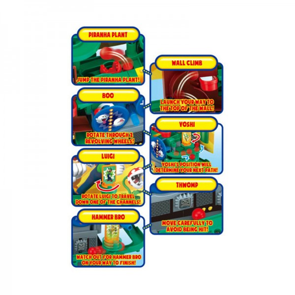 Συναρπαστικός λαβύρινθος δράσης σχεδιασμένος και εμπνευσμένος από τον κόσμο του Super Mario! Προχωρήστε προσεκτικά την μπίλια που παίζετε, χρησιμοποιώντας τα 3 κουμπιά και τους 2 περιστρεφόμενους τροχούς που περνούν από τις 7 δύσκολες ζώνες για να φτάσετε στον στόχο! Πολλά τεχνάσματα και κινήσεις χωρίς μπαταρία. Για 1 παίκτη τη φορά.