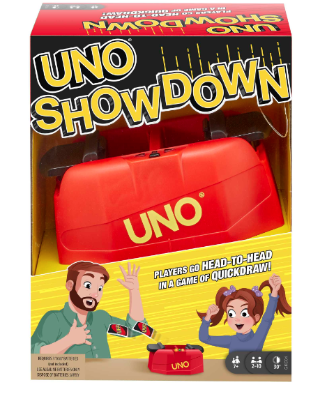Το UNO® Showdown™ είναι το παιχνίδι καρτών που όλοι λατρεύουν, αλλά ο τρόπος παιχνιδιού του συναρπάζει ακόμα περισσότερο! Όταν οι ήχοι και η ένδειξη της μονάδας σβήσει, γίνετε ο πρώτος που θα πατήσει το κουμπί. Ο γρηγορότερος παίκτης κερδίζει την αναμέτρηση και το UNO® Showdown™ εκτοξεύει κάρτες στους αντιπάλους του! Οι παίκτες προσπαθούν να ξεφορτωθούν όλες τις κάρτες τους ταιριάζοντάς τες με την πρώτη κάρτα που βρίσκεται στην στοίβα άχρηστων καρτών. Όταν οι παίκτες μείνουν με μία κάρτα δεν πρέπει να ξεχάσουν να φωνάξουν "UNO"! Διασκέδαση για παιδιά, οικογένειες ή ενήλικες και ένα υπέροχο δώρο για παίκτες ηλικίας 7 ετών και άνω.
