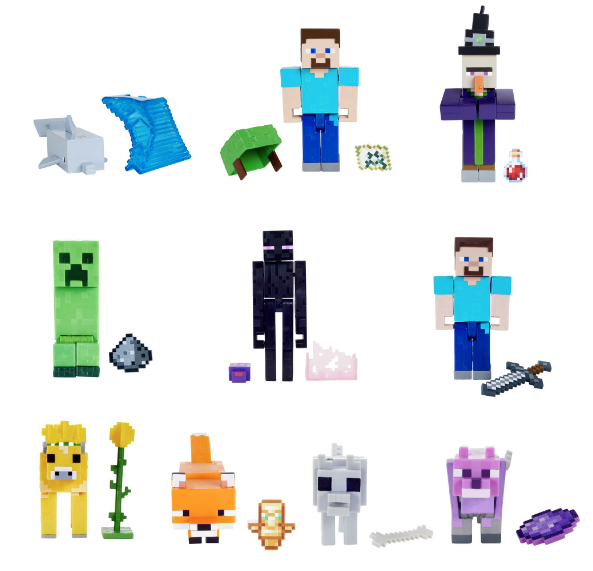 • Το Minecraft κάνει άλμα από την οθόνη στην πραγματική ζωή με αυτή την απίθανη σειρά φιγούρων δράσης! Κάθε φιγούρα έχει ευλύγιστα μέλη και είναι ιδανική για να αναπαραστήσετε σκηνές του παιχνιδιού ή να δημιουργήσετε τις δικές σας περιπέτειες.