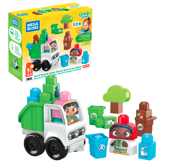- Ιδανικά για ηλικίες 1+ και με την υποστήριξη της Fisher-Price®, τα τουβλάκια Green Town™ είναι ιδανικά για μικρά χεράκια, σχεδιασμένα να βοηθούν στην ανάπτυξη της λεπτής κινητικότητας και να εισάγουν τα παιδιά σε πράσινες συμπεριφορές, όπως η διαλογή και η ανακύκλωση απορριμμάτων