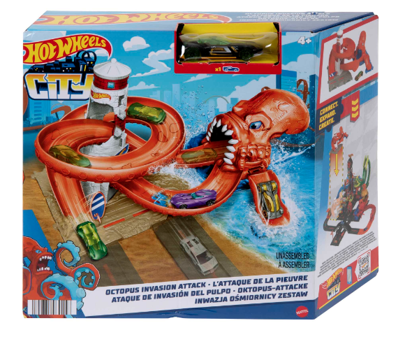 • Αυτή η συλλογή περιλαμβάνει έναν φάρο, ένα βενζινάδικο και ένα αστυνομικό τμήμα με γιγαντιαία πλάσματα των οποίων τα χέρια και τα σώματα έχουν μεταμορφωθεί σε κομμάτια πίστας που συνδέονται μεταξύ τους ή με άλλα σετ Hot Wheels®. Το καθένα πωλείται ξεχωριστά, ανάλογα με τη διαθεσιμότητα.