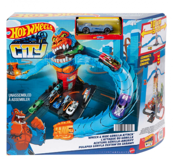 Άγρια θηρία έχουν εισβάλει σε γνωστά σημεία της πόλης των Hot Wheels™, δημιουργώντας συναρπαστικά εμπόδια και επικές περιπέτειες που μπορούν να ζήσουν τα παιδιά με τα Hot Wheels® οχήματά τους. Αυτά τα σετ συνδέονται μεταξύ τους αλλά και με άλλα σετ, ώστε τα παιδιά να μπορούν να χτίσουν τη δική τους μοναδική πόλη γεμάτη προκλήσεις και εμπόδια που εμπνέουν τη δημιουργική αφήγηση μέσα από το παιχνίδι. Θα θέλουν να τα συλλέξουν όλα (το καθένα πωλείται ξεχωριστά). Περιλαμβάνει ένα αυτοκίνητο Hot Wheels® και αποτελεί ιδανικό δώρο για κάθε περίσταση. Τα χρώματα και τα σχέδια μπορεί να διαφέρουν.
