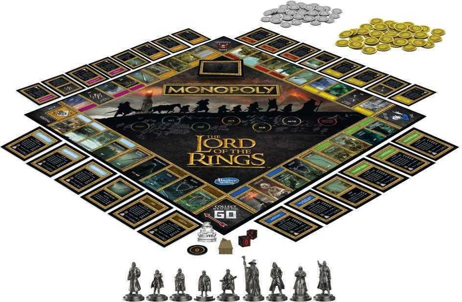 Στη μονόπολη The Lord of the Rings, οι παίκτες ταξιδεύουν στη Μέση Γη ως ένα μέλος της συντροφιάς. Πρέπει να αγοράσουν ακίνητα ώστε να προστατεύσουν τα εδάφη από τους κακούς στρατούς της Mordor και να κερδίσουν χρήματα χρεώνοντας ενοίκιο και ελέγχοντας το Δαχτυλίδι της Δύναμης!