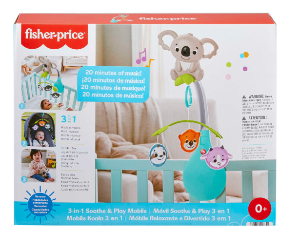 Το Φορητό Περιστρεφόμενο με Ζωάκια 3 σε 1 της Fisher-Price® είναι ιδανικό παιχνίδι για χαλάρωση και παιχνίδι! Το περιστρεφόμενο διαθέτει ένα χαριτωμένο κοάλα και 3 ακόμα κρεμαστά παιχνίδια με φιλικές φατσούλες με δύο πλευρές, πολύχρωμες και έντονης αντίθεσης, που βοηθούν στην ανάπτυξη των αισθήσεων του μωρού. Με 3 τρόπους χαλάρωσης και απασχόλησης, μπορείτε να το χρησιμοποιήσετε ως περιστρεφόμενο κούνιας, να αφαιρέσετε το περιστρεφόμενο και να το συνδέσετε στο καρότσι ή να πάρετε μαζί σας το παιχνίδι κοάλα όπου κι αν πάτε. Επιπλέον, παίζει χαλαρωτική μουσική όταν είναι συνδεδεμένο στην κούνια ως περιστρεφόμενο και αλλάζει αυτόματα σε διασκεδαστική μουσική όταν αφαιρείται για διασκέδαση!