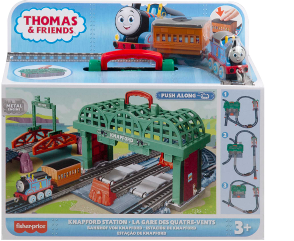 Τα παιδιά μπορούν να φανταστούν τις δικές τους συναρπαστικές περιπέτειες στο νησί του Σόντορ με αυτό το αναδιαμορφώσιμο σετ Τόμας το Τρενάκι, το οποίο διαθέτει τον εμβληματικό σταθμό Κνάπφορντ, 23 κομμάτια πίστας, καθώς και ένα συρόμενο τρενάκι Τόμας. Η λαβή επιτρέπει στα παιδιά να πάρουν μαζί τους το σετ όπου κι αν πάνε!