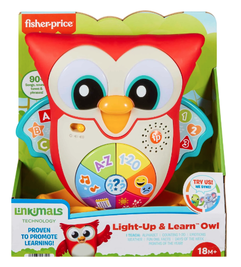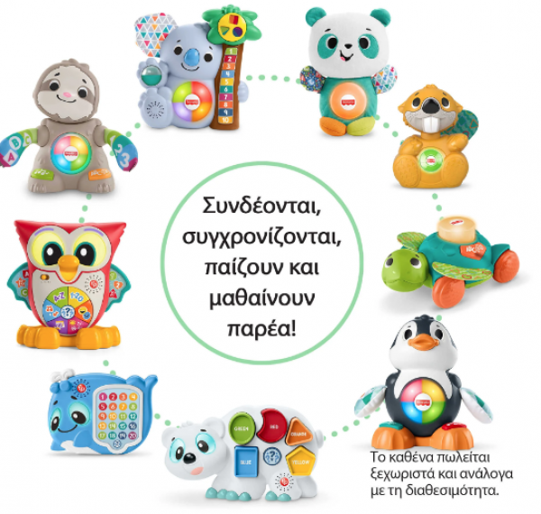 Το παιχνίδι γίνεται... πολύ έξυπνο όταν παίζουν τα παιδιά με την Κουκουβάγια, τη Σοφή της σειράς Linkimals™ της Fisher-Price®. Όταν τα παιδιά πιέζουν τα κουμπιά στην κοιλίτσα της Κουκουβάγιας και την κουνάνε αριστερά-δεξιά, αυτή η εκφραστική φίλη φωτίζεται με έντονα χρώματα και ακούγονται περισσότερα από 90 τραγουδάκια, ήχοι και φράσεις, που μαθαίνουν το αλφάβητο, αρίθμηση από το 1 έως το 20, τον καιρό, συναισθήματα και πολλά άλλα. Και όταν η Κουκουβάγια συναντάει άλλα φιλαράκια Linkimals™ τότε όλα μαζί μιλάνε, τραγουδάνε και φωτίζουν παρέα! (Άλλα παιχνίδια πωλούνται ξεχωριστά και ανάλογα με τη διαθεσιμότητα.)