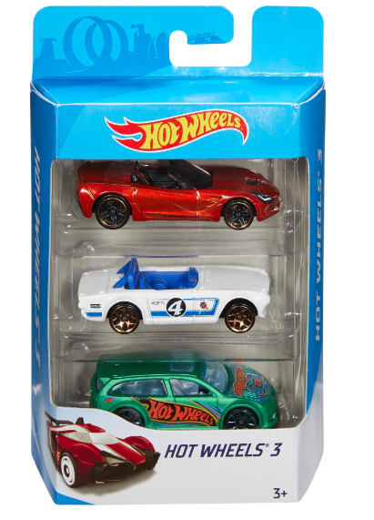 Μία συσκευασία με 3 αυτοκινητάκια Hot Wheels® για να ξεκινήσετε αμέσως μία απίθανη συλλογή! Τα σετ 3 αυτοκινήτων προσφέρουν δράση και γρήγορες συγκινήσεις. Ιδανικά για τους λάτρεις των αυτοκινήτων όλων των ηλικιών. Με αυθεντικές λεπτομέρειες και σχέδια που μαγνητίζουν, αυτά τα σετ αποτελούν το καλύτερο δώρο για παιδιά και συλλέκτες. To κάθε σετ πωλείται ξεχωριστά, ανάλογα με τη διαθεσιμότητα. Τα χρώματα και τα σχέδια μπορεί να διαφέρουν.