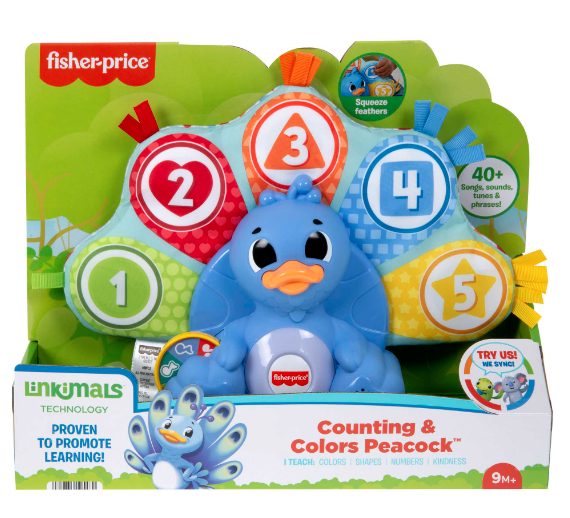Το Παγώνι το Χρωματιστούλι της σειράς Fisher-Price® Linkimals™ είναι ένας διαδραστικός φίλος με φτερά που παρουσιάζει στο μωρό σας αριθμούς, χρώματα, σχήματα και την έννοια της καλοσύνης, καθώς παίζει μαζί του. Τα μωρά μπορούν να πατήσουν τα 5 πολύχρωμα φτερά του ή να γυρίσουν τον τροχό για να ενεργοποιήσουν διασκεδαστικά τραγουδάκια, ήχους, φράσεις και πολύχρωμα φώτα. Και όταν αυτό το περήφανο παγώνι συναντάει άλλα φιλαράκια Linkimals™ τότε όλα μαζί μιλάνε, τραγουδάνε και φωτίζουν παρέα! (Άλλα παιχνίδια Linkimals™ πωλούνται ξεχωριστά και ανάλογα με τη διαθεσιμότητα.)