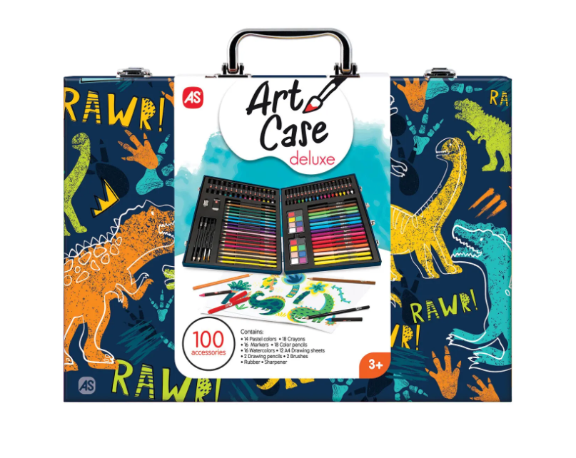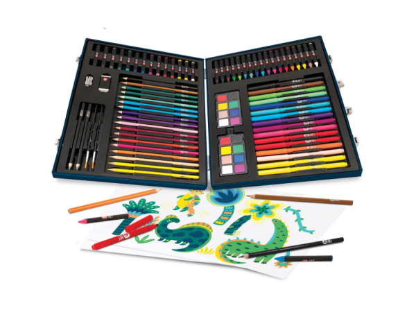 Όσα χρώματα κι αν έχεις δεν είναι ποτέ αρκετά για τη ζωγραφική σου! Στην κασετίνα deluxe δεινόσαυρος θα βρεις 100 αξεσουάρ για να ζωγραφίσεις τα αγαπημένα σου σχέδια και να μυηθείς σε διάφορες τεχνικές. Και όλα αυτά σε μία θήκη με χερούλι που μπορείς να την παίρνεις παντού μαζί σου!