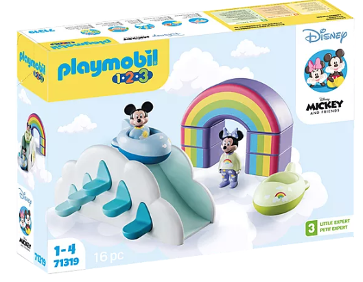 Αυτό το σετ παιχνιδιού βοηθά τα μικρά παιδιά να αναπτύξουν τις δεξιότητες τους με διάφορους τρόπους μέσα από συνδυασμούς που ενεργοποιούν τη δημιουργική σκέψη. Για παράδειγμα, το ουράνιο τόξο μπορεί να χρησιμοποιηθεί τόσο ως τραμπάλα όσο και ως κουδουνίστρα. Ενώ, εάν συνδυάσετε τα δομικά στοιχεία του ουράνιου τόξου μπορεί να σχηματιστεί μία πολύχρωμη αψίδα. Όλα τα εξαρτήματα του παιχνιδιού, όπως η σκάλα από σταγόνες βροχής, βοηθούν στην ανάπτυξη του παιδιού και συμβάλλουν στην καλλιέργεια των λεπτών κινητικών δεξιοτήτων και της γνωστικής κατανόησης. Οι χαριτωμένοι χαρακτήρες της Disney εμπνέουν το πρώτο παιχνίδι ρόλων και δημιουργικές ιστορίες