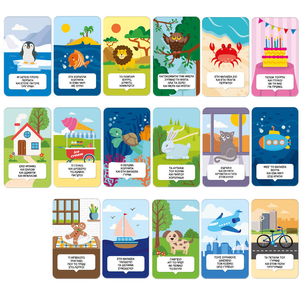 Περιεχόμενα: • 17 κάρτες • Μαυροπίνακας • Μαρκαδόρος γράψε-σβήσε • Βάση στήριξης • Οδηγίες