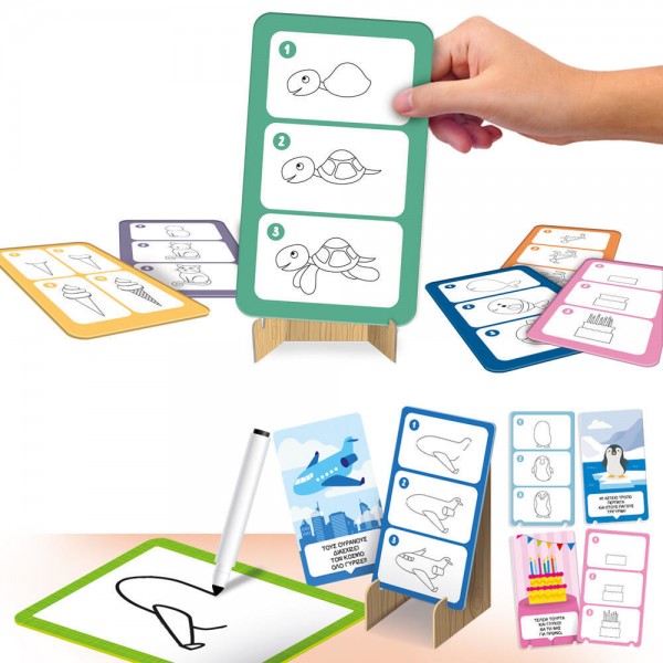Πολλές κάρτες για να διδάξετε το παιδί σας να σχεδιάζει βήμα-βήμα. Με τον ειδικό πίνακα και τον μαρκαδόρο που σβήνει, μπορείτε να σχεδιάσετε ό,τι θέλετε! Με αυτό το παιχνίδι, το παιδί αναπτύσσει δημιουργική σκέψη, μια από τις δεξιότητες ζωής που προσδιορίζονται από τον ΠΟΥ (Παγκόσμιος Οργανισμός Υγείας).