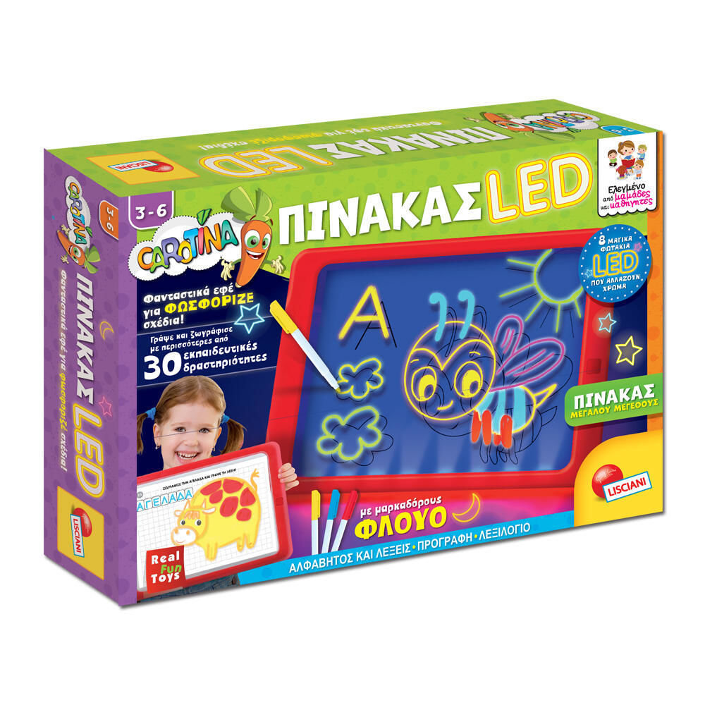 Διασκεδάστε φωτίζοντας σχέδια, γράμματα και λέξεις! Με τον πίνακα LED της Lisciani και τους φωσφοριζέ μαρκαδόρους, μπορείτε να διασκεδάσετε και να παίξετε με τη φαντασία σας! Επιπλέον, μαθαίνετε να διαβάζετε και να γράφετε με τις εκπαιδευτικές κάρτες προοδευτικής δυσκολίας.