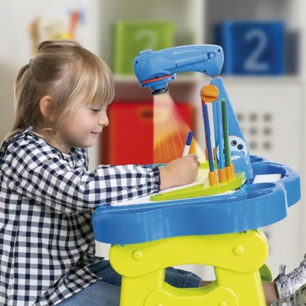 Ένα θρανίο με τον μαγικό προτζέκτορα LED, για πολλές εκπαιδευτικές και δημιουργικές δραστηριότητες. Με πλήρες πρόγραμμα γραφής, για να μάθετε πώς να γράφετε πολλές μικρές λέξεις. Επιπλέον, πολλά σχέδια για να χρωματίστε και να συλλέξετε!