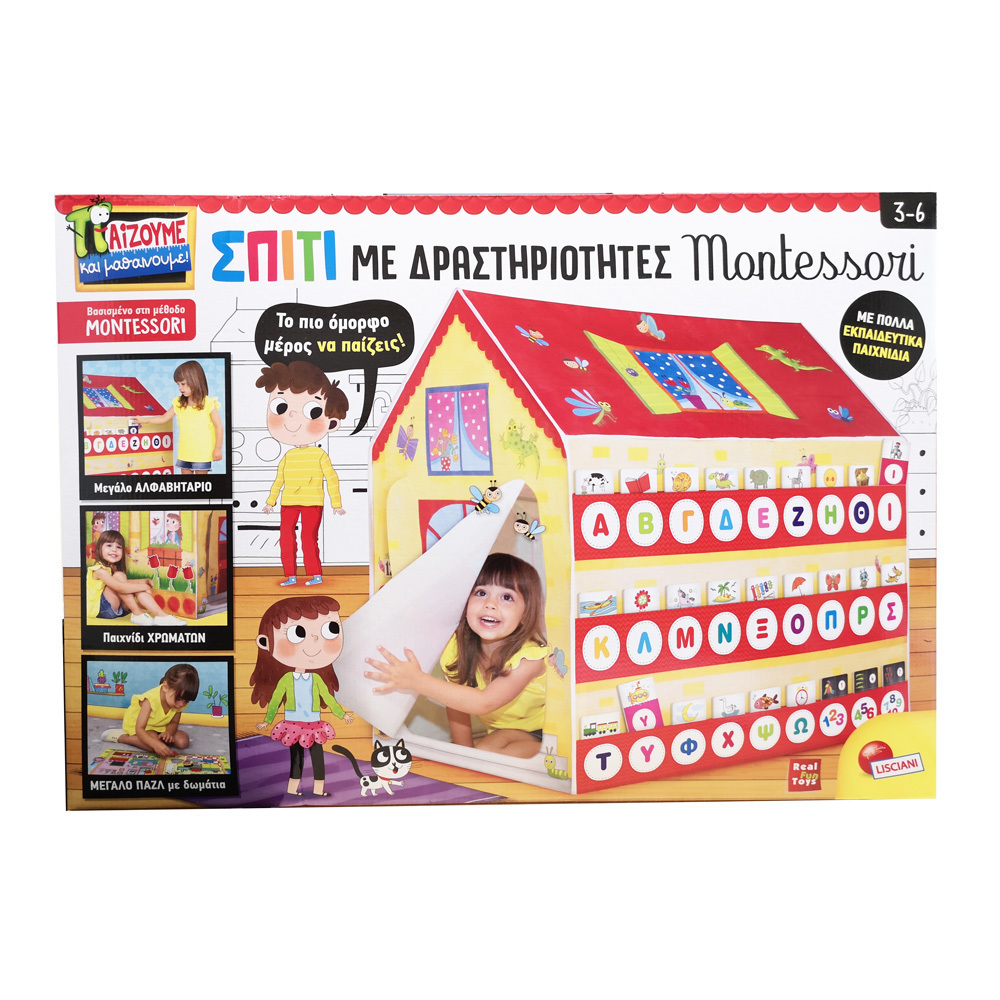 Ένα μεγάλο υφασμάτινο σπίτι με πολλά παιχνίδια για να παίξετε μέσα και έξω από αυτό! Όλα τα παιχνίδια βασίζονται στη Μέθοδο Μοντεσσόρι!