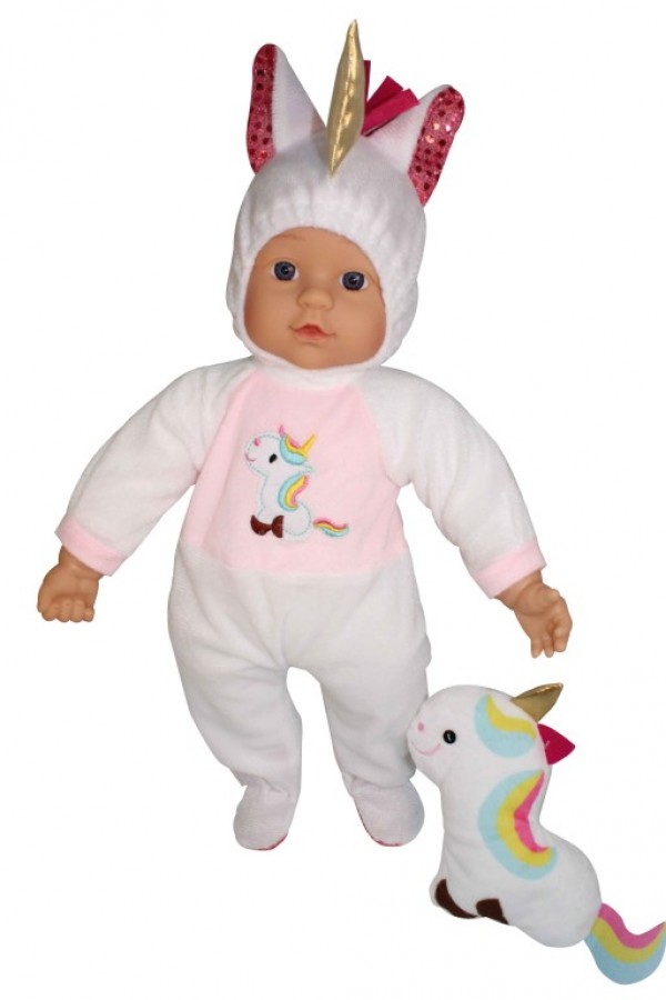 Κούκλα μωράκι 41εκ. με βελούδινο φορμάκι σε σχήμα μονόκερου.