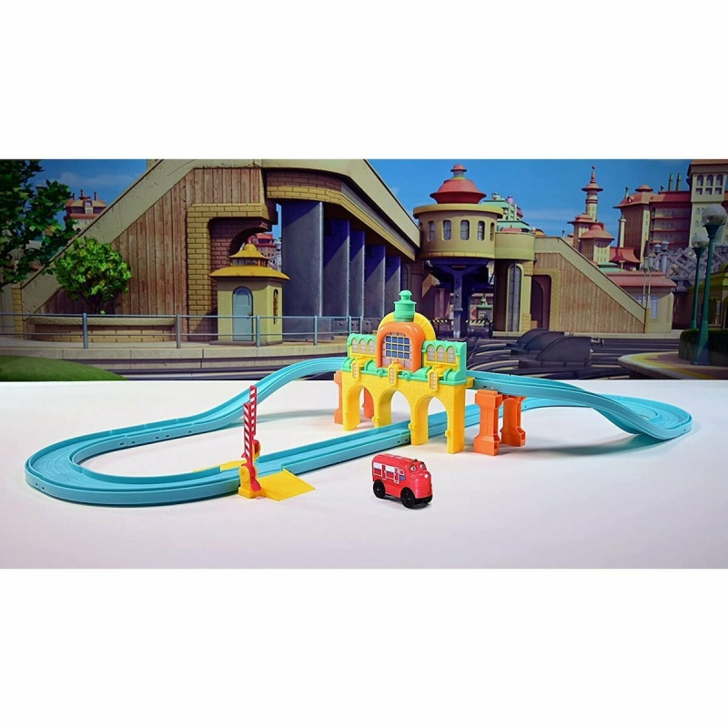 Σταθμός Chuggington. Ένα Ολοκληρωμένο σετ εκκίνησης με τον Wilson να κινείται μέσα στις ράγες του.
