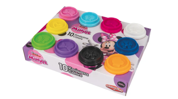 Σε αυτό το κουτάκι κρύβονται 560g πλαστελίνης σε δέκα διαφορετικά χρώματα για να δημιουργήσετε ό,τι φαντάζεστε από τον κόσμο της αγαπημένης σας Minnie.