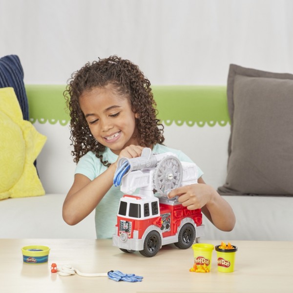 Δημιουργήστε αποστολές διάσωσης πυρκαγιάς ξανά και ξανά με αυτό το φορτηγό για ηλικίες από 3 ετών και άνω. Χρησιμοποιήστε τους στροβιλισμούς στο κανόνι του πυροσβεστικού οχήματος, για να πιέσετε το ψεύτικο νερό και να σβήσετε τις φωτιές Play-Doh. Με άλλα 4 τυποποιημένα δοχεία Play-Doh, υπάρχουν πολλές άλλες δημιουργίες για τους επίδοξους πυροσβέστες.