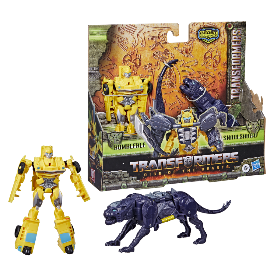 Ο Bumblebee, ο θαρραλέος ανιχνευτής Autobot, οπλίζεται για αναμέτρηση με το θηρίο σύντροφό του Snarlsaber. Κλασικά ρομπότ Transformers και ρομπότ θηρία ενώνουν τις δυνάμεις τους σε μια επική συμμαχία! Συνδυάστε τα παιχνίδια Beast Alliance Beast Combiner 2-Pack Bumblebee και Snarlsaber για να προετοιμαστείτε για αναμέτρηση! Η αναμέτρηση στη Γη δεν είναι πλέον μεταξύ των ηρωικών Autobots και των κακών Decepticons. Το Transformers: Rise of the Beasts εισάγει μυστηριώδεις φατρίες, τους MaXimals, τους Predacons και τους Terrorcons, σε μια επική περιπέτεια της δεκαετίας του '90. Δημιουργήστε την απόλυτη συμμαχία θηρίων και ετοιμαστείτε για αναμέτρηση με παιδικά παιχνίδια Transformers Beast Alliance εμπνευσμένα από τη νέα ταινία Transformers, Transformers: Rise of the Beasts!