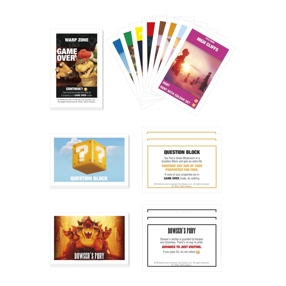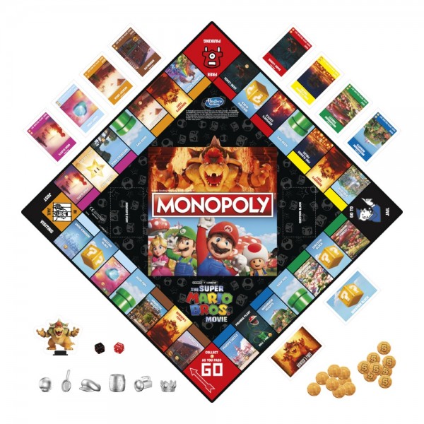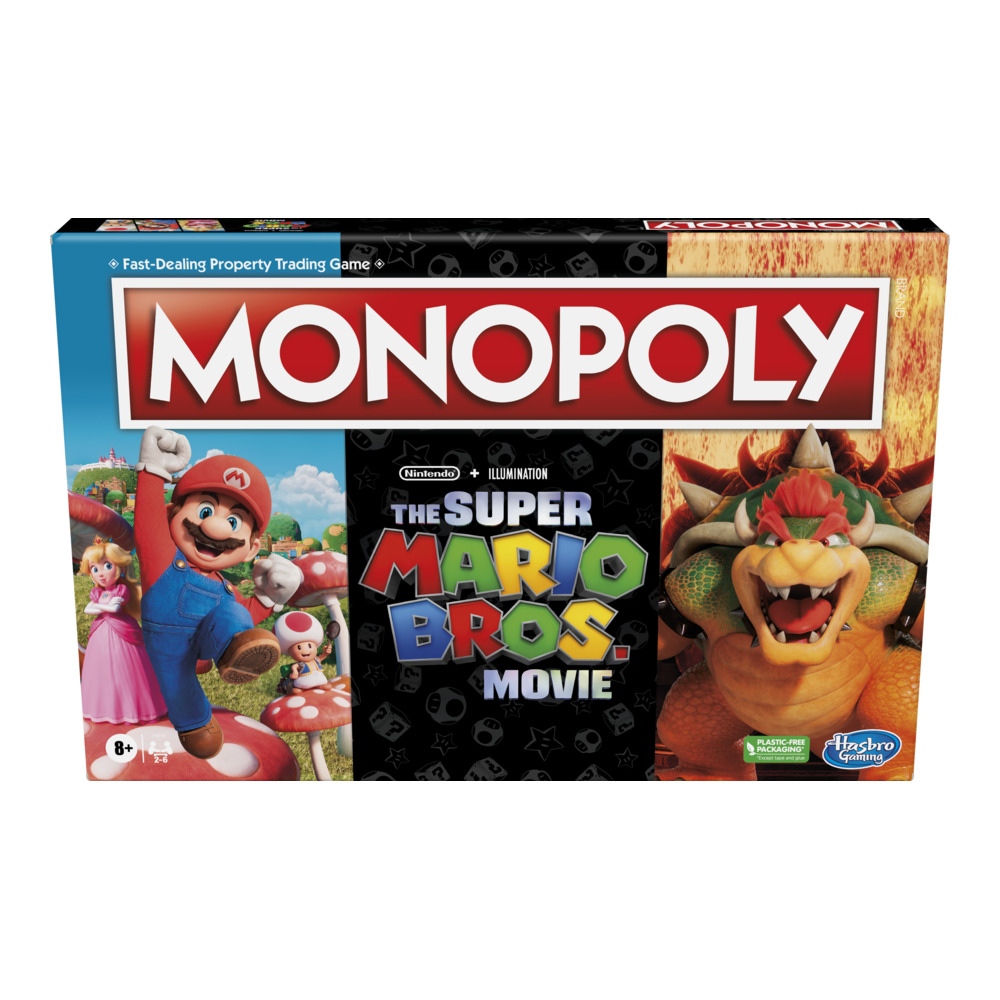 Σε αυτό το γεμάτο δράση παιδικό επιτραπέζιο παιχνίδι Monopoly The Super Mario Bros. Movie Edition, οι fan μπορούν να εξερευνήσουν το Βασίλειο των Μανιταριών, καθώς αγοράζουν, πωλούν και εμπορεύονται τοποθεσίες από το σύμπαν του Super Mario! Τα χρυσά νομίσματα αντικαθιστούν τα μετρητά της Monopoly και όποιος συγκεντρώσει τα περισσότερα κερδίζει.Κερδίστε ακόμη περισσότερα κατέχοντας αντίστοιχα σύνολα ιδιοτήτων. Αλλά προσέξτε τον Bowser, ο οποίος μπορεί να σαρώσει τις ιδιοκτησίες σας, να κλέψει νομίσματα ή ακόμα και να στείλει παίκτες στη φυλακή! Ανακαλύψτε τις συντομεύσεις μέσα από τους Ανοιχτούς σωλήνες και συγκεντρώστε νομίσματα μέσα από τους Κύβους Ερώτησης αλλά και τα Φυτά Πιράνχας! Τα παιχνίδια Super Mario αποτελούν συναρπαστικά δώρα για τα παιδιά, αλλά και τους λάτρεις του Mario και της Monopoly από ηλικία 8 ετών και άνω.