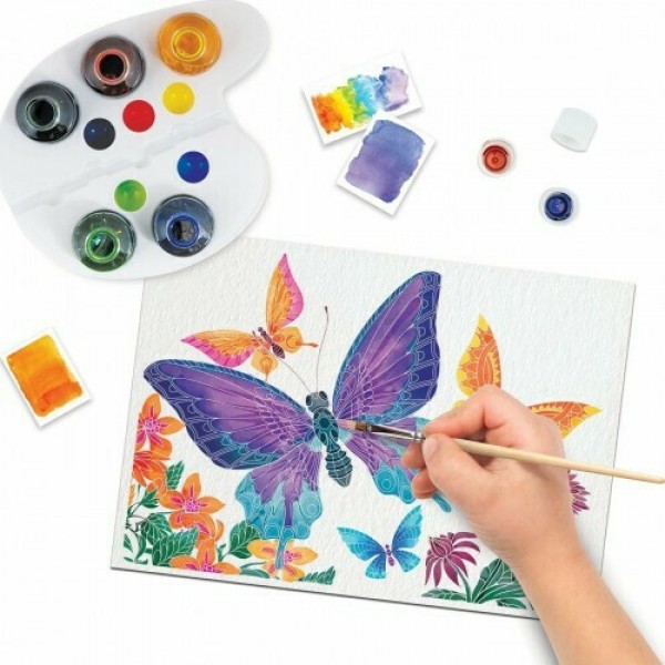 Το Εργαστήριο Ζωγραφικής Ακουαρέλα Πεταλούδες είναι ένα ολοκληρωμένο σετ ζωγραφικής, το οποίο περιλαμβάνει όλα τα απαραίτητα σύνεργα, σε πρακτικό μέγεθος, ώστε να μάθει το παιδί να ζωγραφίζει με την τεχνική και τα χρώματα ακουαρέλας σχέδια σχετικά με τις πεταλούδες.