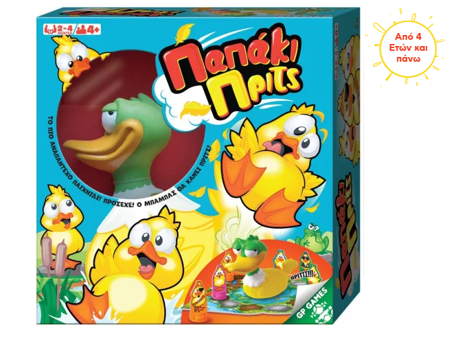 Το επιτραπέζιο "Παπάκι Πρίτς" είναι ένα ξεκαρδιστικό επιτραπέζιο παιχνίδι για όλη την οικογένεια κατάλληλο για παιδιά από 4 ετών.