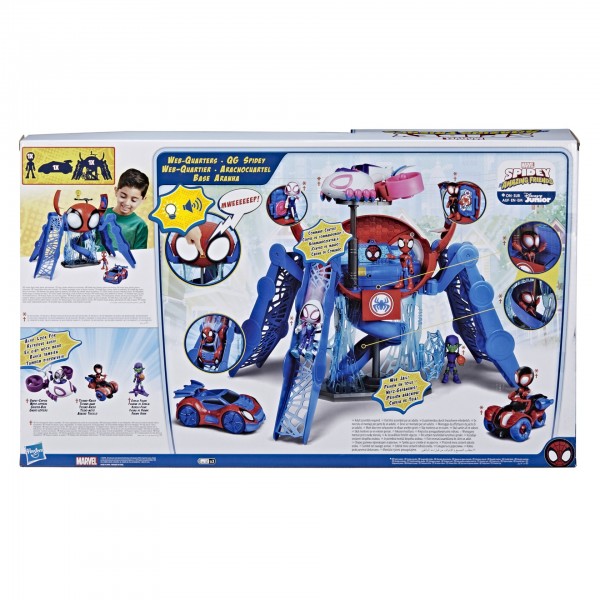 Το σετ παιχνιδιού Web-Quarters προσφέρει ατελείωτες δυνατότητες δράσης για τον Spidey και τους φίλους του. Αυτή η αραχνο-κατασκευή μοιάζει να ζωντανεύει καθώς τα μάτια του Spidey φωτίζονται και αρχίζει να μιλά, ενώ είναι γεμάτο κρυφές γωνιές που προσφέρονται για διασκεδαστικό αραχνο-παιχνίδι!