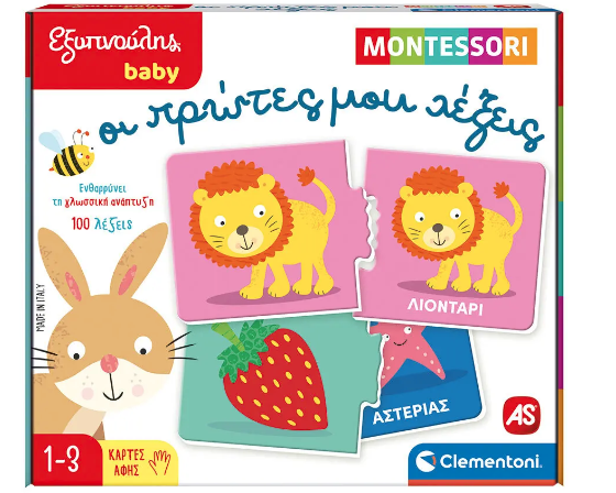 Αυτό το παιχνίδι, εμπνευσμένο από τη μέθοδο Montessori, που ονομάζεται ονοματολογία και έχει σχεδιαστεί για να υποστηρίζει τη γλωσσική ανάπτυξη των παιδιών από τα πρώτα χρόνια. Κάθε παζλ αποτελείται από δύο κομμάτια προς αντιστοίχιση: στο ένα υπάρχει η εικόνα ενός ζώου ή ενός αντικειμένου και στο άλλο η ίδια εικόνα με το όνομά της.