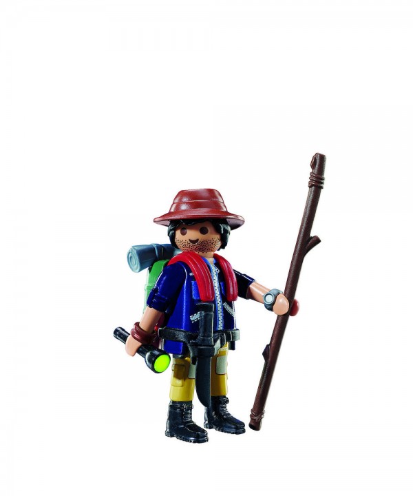Ο Εξερευνητής Playmobil ετοιμάζεται για νέες περιπέτειες. Έχει πάντα μαζί του το αγαπημένο του μπαστούνι πεζοπορίας και έναν φακό. Το σετ παιχνιδιού περιλαμβάνει ένα σακίδιο και ένα καπέλο.