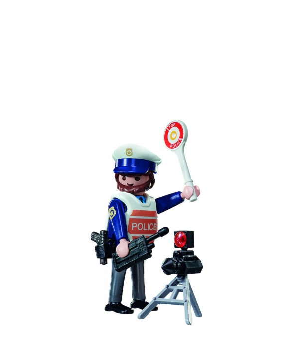 Με ραντάρ ελέγχου ταχύτητας .Βοηθήστε τον Τροχονόμο να ρυθμίσει την κυκλοφορία στους δρόμους και να σταματήσει όσους υπερβαίνουν το όριο ταχύτητας. Το σετ παιχνιδιού περιλαμβάνει έναν τροχονόμο με τη στολή του, σήμα τροχαίας, ραντάρ ελέγχου ταχύτητας και άλλα αξεσουάρ.