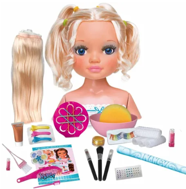Nancy Μοντέλο Ομορφιάς Ξανθό (700014860). Nancy, τι παίζουμε σήμερα; Σήμερα φτιάχνουμε μαλλιά και μακιγιάζ στο Μοντέλο Ομορφιάς με την μορφή της Nancy που έχει ξανθά μαλλιά! Δημιουργήστε αμέτρητα χτενίσματα στα υπέροχα μαλλιά της Nancy με τα αξεσουάρ που περιέχονται! Προσθέστε makeup και μεταμόρφωσε την! Το σετ περιέχει περισσότερα από 25 αξεσουάρ για μαλλιά και μακιγιάζ όπως χτένες, πινέλα, βλεφαρίδες, σκιές ματιών, τσιμπιδάκια, μπικουτί, στρας και άλλα. Το μοντέλο ομορφιάς έχει ύψος 23 εκ. Σημείωση: τα προϊόντα μακιγιάζ είναι για χρήση μόνο στην κούκλα