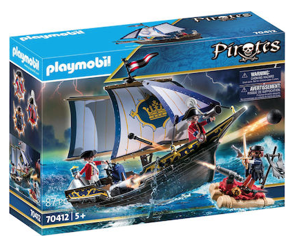 Πλοιάριο λιμενοφυλάκων με πειρατική σχεδία και πειρατή. Περιλαμβάνει κανόνι, σεντούκι θησαυρού και άγκυρα. Το πλοίο επιπλέει και μπορεί να αναβαθμιστεί. Κατάλληλο για παιδιά ηλικίας 4+ ετών.