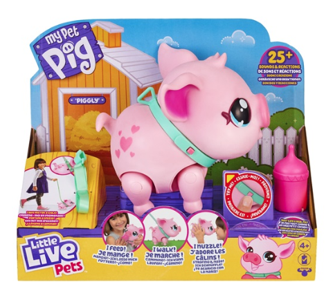 Η Lucky το Γουρουνάκι είναι το νέο σας αξιαγάπητο κατοικίδιο! Ένα γλυκό και διαδραστικό γουρουνάκι με μαλακά αυτάκια και διαδραστική μυτούλα ! Με περισσότερους από 25 ήχους και αντιδράσεις, η Lucky το Γουρουνάκι κινείται και ακούγεται ακριβώς όπως ένα πραγματικό γουρουνάκι. Ταΐστε την με το μπιμπερό της και αγκαλιάστε την καθώς αντιδρά στο άγγιγμά σας. Σηκώστε την και ακουμπήστε τη μύτη σας στη μουσούδα της και θα σας δώσει ένα γλυκό φιλί! Το γουρουνάκι κάνει τόσους πολλούς αστείους και γλυκούς ήχους - γουργουρίζει, τρώει, γελάει, μυρίζει, φτερνίζεται! Έχει πολύ μαλακό δέρμα και χνουδωτά αυτιά που κουνιούνται όταν βρίσκεται σε κίνηση. Περπατάει μόνη της ή μαζί σας καθώς την πάτε βόλτα με το λουράκι της! Χαϊδέψτε απαλά την πλάτη της και δείτε την να χορεύει με τις δικές της μουσικές μελωδίες. Θα γίνει η καλύτερη παρέα! Στη συσκευασία θα βρείτε: 1 My Pet Pig διαδραστικό γουρουνάκι, 1 λουρί, 1 μπιμπερό, φυλλάδιο οδηγιών. Λειτουργεί με 3ΧΑΑ μπαταρίες (περιέχονται).Διαστάσεις συσκευασίας: Μ:7,00 x Π:4,00 Υ:6,5 εκ.