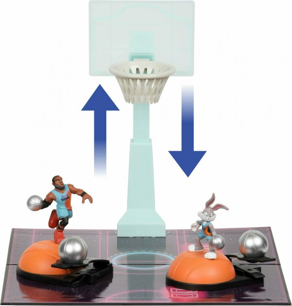 Τα Looney Tunes επιστρέφουν! Και ενώνουν τις δυνάμεις τους με τον αστέρα του NBA LeΒron James για να αντιμετωπίσουν τους κακούς στον απόλυτο αγώνα μπάσκετ! Ώρα για αγώνα στο γήπεδο μπάσκετ με τον Lebron & τον Bugs Bunny! Τοποθέτησε τις φιγούρες στη βάση και εκτόξευσε τη μπάλα. σούταρε και βάλε καλάθι! Μπορείς να βάλεις τρίποντο; To σετ είναι συμβατό με όλες τις φιγούρες 5 εκ. της σειράς (πωλούνται ξεχωριστά) ώστε να σκοράρεις με τον αγαπημένο σου παίχτη. Το σετ παιχνιδιού περιέχει: 1 ταμπλό σε μορφή γηπέδου μπάσκετ, 1 μπασκέτα με προσαρμοζόμενο ύψος, 2 φιγούρες – Bugs και LeBron, 2 βάσεις εκτόξευσης μπάλας Για παιδιά από 4 ετών.