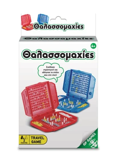Επιτραπέζιο ταξιδίου "Θαλασσομαχίες" Πρακτικό, συμπαγές και εύκολο στη μεταφορά - κατάλληλο για παιχνίδι σε κάθε ταξίδι! Σχεδίασε στρατηγική και οδήγησε το στόλο σου στη νίκη! Περιέχονται δύο βάσεις παιχνιδιού που ανοιγοκλείνουν σαν βαλιτσάκι, 10 πλοία, 72 πορτοκαλί πιόνια, 144 λευκά πιόνια.