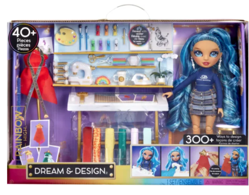 Rainbow High Studio Ραπτικής Με Κούκλα-Σχεδιάστρια Μόδας Skyler (587514EUC) Σχεδιάστε, δημιουργήστε, παίξτε με στυλ μαζί με την σχεδιάστρια μόδας του Rainbow High Skyler στο στούντιο ραπτικής της! Το σετ περιλαμβάνει όλα τα απαραίτητα αξεσουάρ 40+ που χρειάζεστε: τραπέζι, καρέκλες, ραπτομηχανή, βιβλίο με σχέδια, ψαλίδι, σίδερο, μολύβια χρωματιστά, 6 πραγματικά διαφορετικά υφάσματα για να δημιουργήσετε το δικό σας σχέδιο, ειδική μελάνι με υγρή εικόνα αποκάλυψης, μανεκέν. Χαρακτηριστικά: