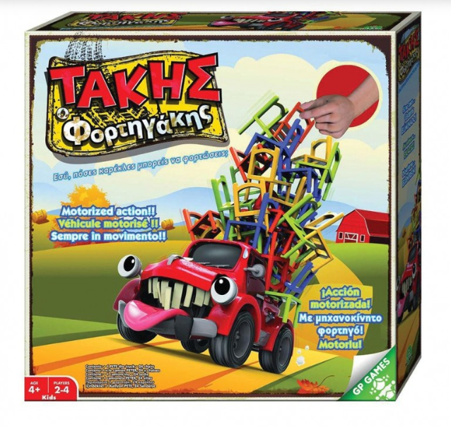 Το παιχνιδιάρικο φορτηγάκι, ο Τάκης, ξεκινά να κάνει γύρους μπροστά στους παίκτες. Η καρότσα του είναι άδεια και οι παίκτες ξεκινούν με τη σειρά να τοποθετούν τις καρέκλες τους όσο ο Τάκης κινείται όπως θέλει! Στόχος των παικτών είναι να φορτώσουν όλες τις καρέκλες τους στην καρότσα του, χωρίς όμως να τους πέσουν. Χρειάζεται προσοχή και ισορροπία, γιατί αν κάποιος παίκτης ρίξει τις καρέκλες, θα πρέπει να τις μαζέψει όλες! Ο πρώτος που θα φορτώσει όλες τις καρέκλες πάνω στον Τάκη τον Φορτηγάκη, είναι ο νικητής!
