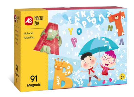 Ένα εκπαιδευτικό παιχνίδι με 91 χάρτινους μαγνήτες με κεφαλαία ελληνικά και λατινικά γράμματα αλλά και εικόνες ζώων και αντικειμένων, το οποίο καθοδηγεί τα παιδιά να εξοικειωθούν με το αλφάβητο και να μάθουν να σχηματίζουν απλές λέξεις. Όλα αυτά τοποθετημένα σε ένα ανθεκτικό κουτί που προορίζεται για καθημερινή χρήση και χρησιμεύει και ως βάση για τη μαγνητική επιφάνεια που περιλαμβάνεται.