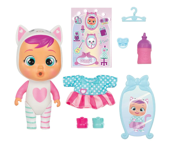Τα Μίνι Κλαψουλίνια Μαγικά Δάκρυα ζούνε στο σπιτάκι ντουλάπα τους και φοράνε για πρώτη φορά ρούχα και παπούτσια! Τάισε τα με το μαγικό μπιμπερό, πίεσε την κοιλίτσα τους και δες τα να κλαίνε με αληθινά δάκρυα.