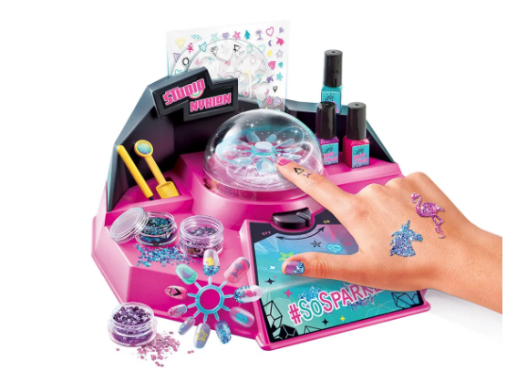 Βάψε τα νύχια σου με τα trendy βερνίκια που θα βρεις στη συσκευασία, και, πριν στεγνώσουν, διάλεξε το glitter που προτιμάς και πρόσθεσέ το στη glitter μηχανή. Τοποθέτησε τα νύχια σου στη συσκευή, έγιναν τόσο λαμπερά! Μπορείς να προσθέσεις αυτοκόλλητα και φαντασία για ακόμα περισσότερο στιλ. Θα βρεις πάνω από 100 στη συσκευασία!