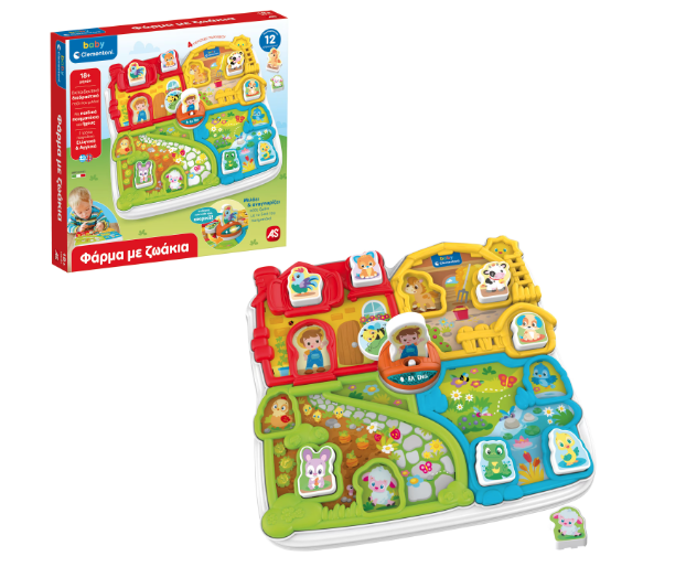 Ένα χαρούμενο αγρόκτημα με πολλούς χαρακτήρες για να ανακαλύψει και να γνωρίσει το παιδί πολλά ζώα και τα περιβάλλοντα όπου ανήκουν. Μέσα από το παιχνίδι, θα ανακαλύψει τις τέσσερις περιοχές του αγροκτήματος και θα τοποθετήσει τους χαρακτήρες σαν παζλ στη σωστή θέση ακούγοντας ένα μικρό ποιηματάκι. Αναπτύσσει την επιδεξιότητα, την φαντασία ενώ ακόμα εξοικειώνει τα παιδιά με τις πρώτες τους λέξεις στα αγγλικά.